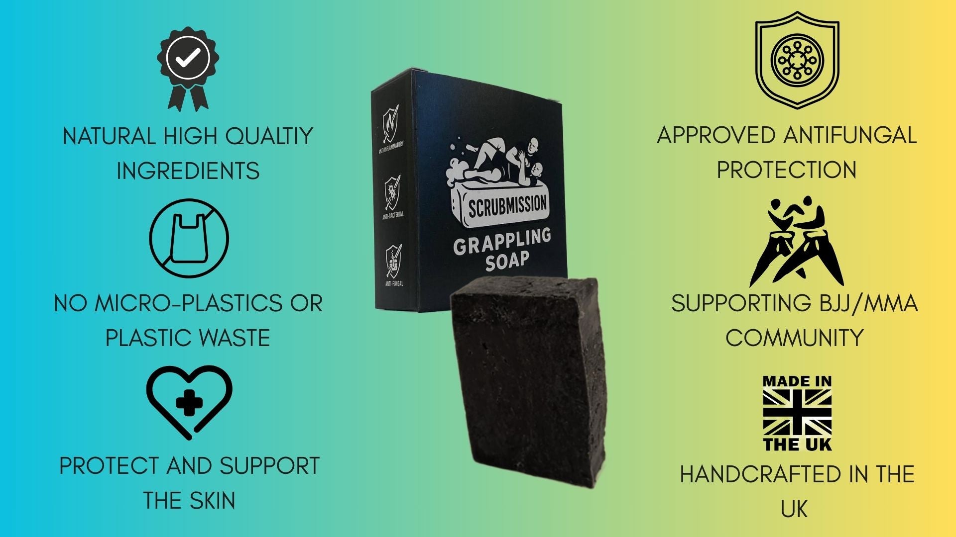 Every batch of Scrubmission Soap is crafted with powerful antifungal and antibacterial ingredients designed to defend your skin.